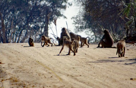 Auf der Straße blockieren einige Paviane den Weg.
