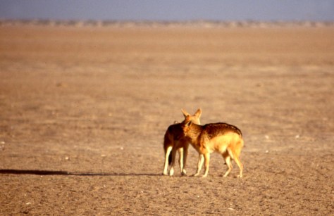 An den Stränden trifft man häufig auf den Schabrakenschakal, der hier nach angeschwemmten Meerestieren und Fischen sucht.