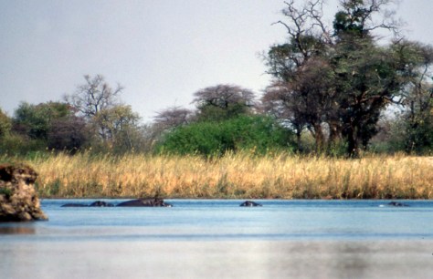 In der zweiten Biegung hörten wir bereits ein wildes Brüllen über das Wasser hallen. Flusspferde!