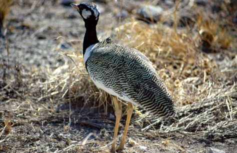 Und immer wieder streifen große Vögel durch den Busch, wie diese Gackeltrappe.