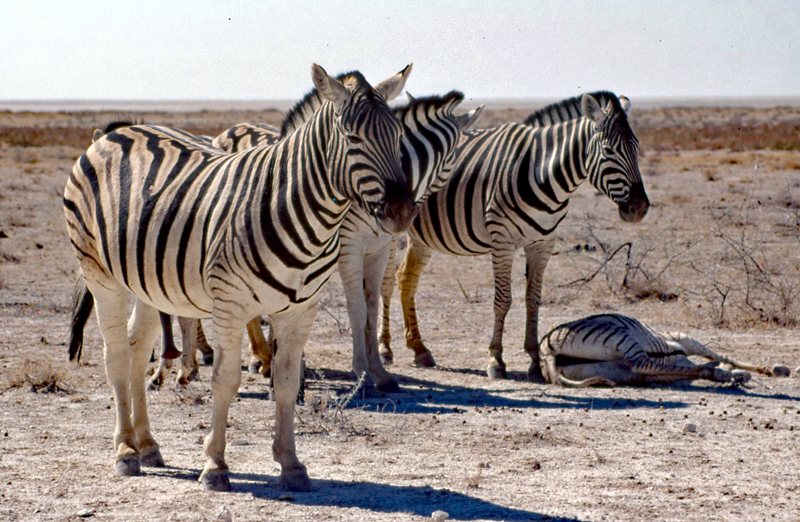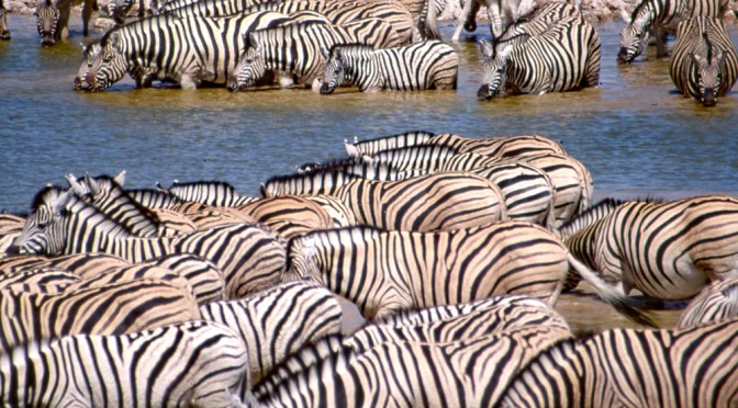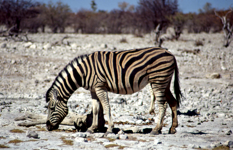 Eindrucksvoll sind vor allem die großen Herden von Steppenzebras, die am Abend zum Trinken an die Wasserlöcher kommen.