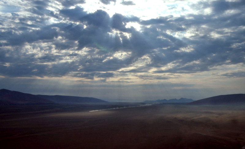 Man beginnt die Fahrt ins Sossusvlei am besten schon mitten in der Nacht und fährt dann in den Sonnenaufgang hinein.