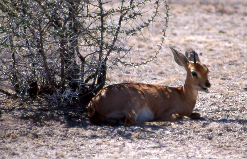 Ein Gazelle sucht Schutz vor der Sonne.