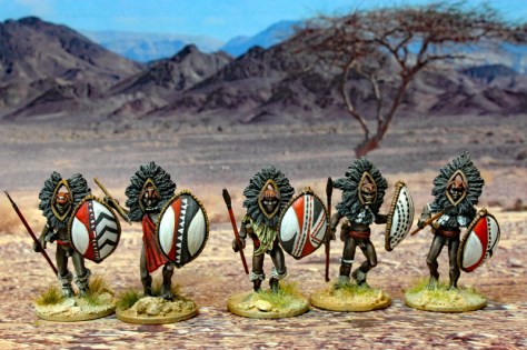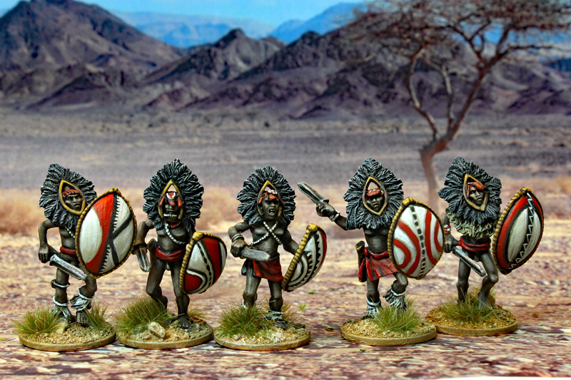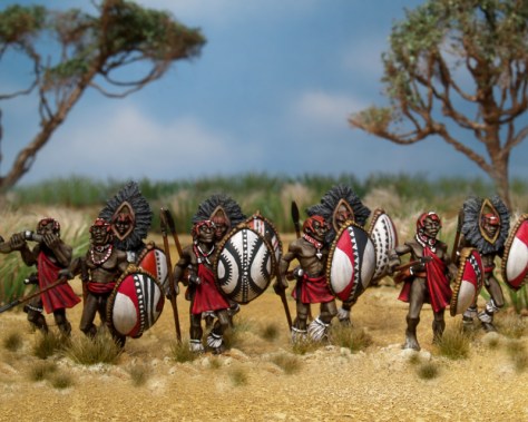 Für meine erste Truppe zum Regelwerk Tribal habe ich mich für die Massai entschieden. Meine Wahl fiel auf dieses berühmte ostafrikanische Volk, weil ich schon seit Jahren einen ganzen Sack 28 mm Massai-Figuren im Regal liegen habe. Zudem lassen sich die Massai ganz hervorragend mit meinen afrikanischen Tieren kombinieren.