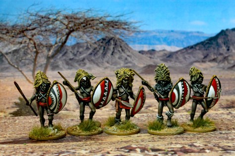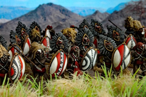 Aus den gennaten Fakten eine Armeeliste für Tribal zu basteln ist nicht weiter schwierig. Als Chief gilt der der beste Krieger des Stammes und erhält natürlich den Skill „Champion“ (2 Punkte). Einer meiner Hereos ist der Laibon, der selbsverständlich den Skill „The Shaman“ erhält (2 Punkte). Die Warriors der jungen Krieger bekommen keinen Skill (1 Punkt), die erfahrenden Krieger erhalten den Skill „Agile“ (2 Punkte) und die Veteranen den Skill „Fearsome“ (2 Punkte). Alle Gruppen und Helden sind mit Speeren bewaffnet und natürlich ist es den Massai verboten Fernwaffen zu verwenden.