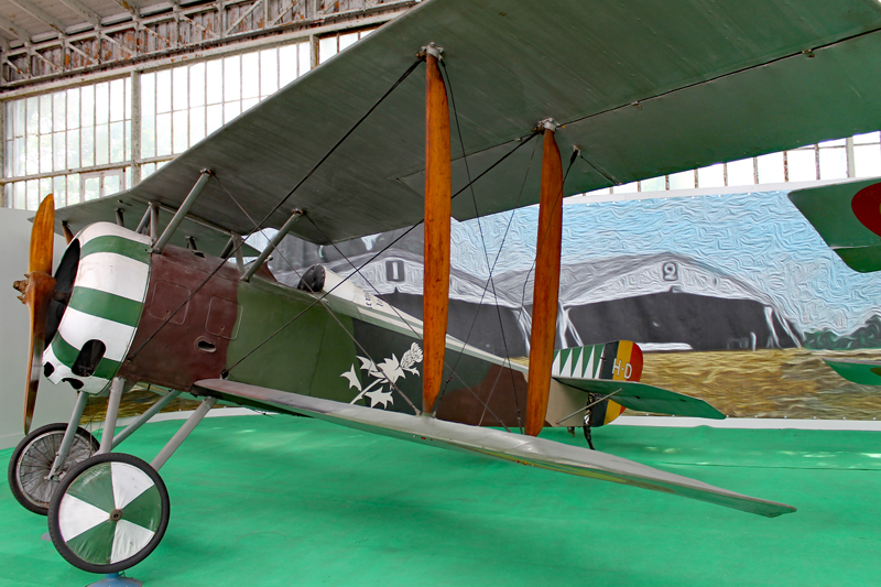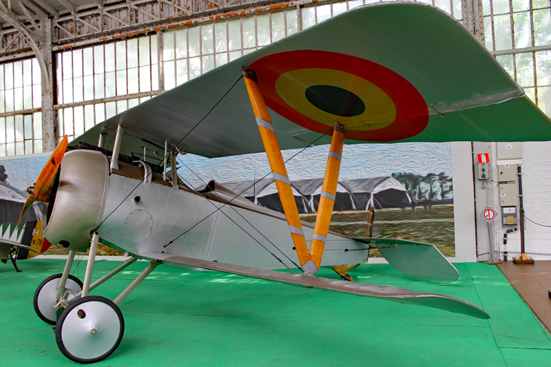 Auf der umlaufenden Empore der beeindruckenden Flugzeughalle des belgischen Armeemuseums ist die Sammlung von Flugzeugen des 1. Weltkriegs, der ersten Jahre der Fliegerei und der Zeit zwischen den Weltkriegen untergebracht. Natürlich liegt der Schwerpunkt auf der Geschichte der belgischen Flugzeuge und Piloten, es gibt aber auch einige Leckerbissen anderer Nationen.