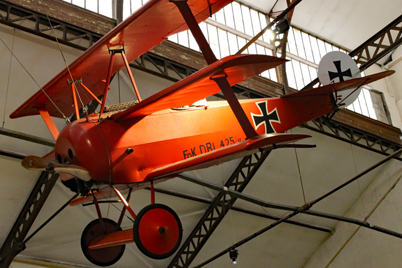 Die rote Fokker Dr.I von Manfred von Richthofen (der „Rote Baron“) ist mit Sicherheit das bekannteste Flugzeug des 1. Weltkrieges. Richthofen erzielte 19 seiner insgesamt 80 Abschüsse mit dieser Maschine. Die Fokker Dr.1 steht nicht in der Flugzeughalle des Museums, sondern hängt in der Ausstellung über den 1. Weltkrieg. Sie wurde mit Originalteilen aufgebaut und gehört angeblich zu den besten Repliken dieses Typs.