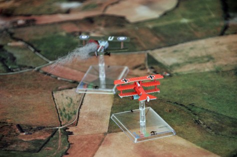 Geschossen wird mit Hilfe eines Entfernungsstabes und der Schusswinkelvorgabe auf der Base des Flugzeugs. Der Schaden wird dann nicht über Würfel, sondern über ein Kartendeck ermittelt. Um die einzelnen Flugzeugtypen und ihre Eigenschaften abzubilden, verwendet man unterschiedliche Manöver- und Schadenskarten. So können bestimmte Eigenarten der Flugzeuge widergespiegelt werden, wie beispielsweise die typischen, schnellen Flugmanöver in Umlaufrichtung bei Umlaufmotoren. Die richtige Spiel-Würze ergibt sich zudem durch zusätzlichen, speziellen Schaden, wie Rauch, Feuer, Personentreffer oder Ladehemmungen. Hat man erst einmal die Standardregeln hinter sich gelassen, geht es daran seine Piloten zu pimpen und ganz spezielle Missionen zu fliegen.