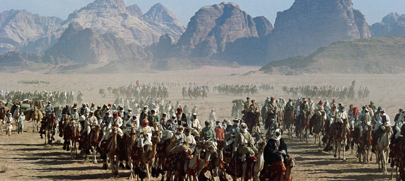 Herausragend bei diesem Film sind für mich zum einen die unterschiedlichen Charaktere, die von so namhaften Schauspielern wie Peter O’Toole, Omar Sharif, Anthony Quinn und Alec Guinness alle meisterlich gespielt werden sowie die Kameraarbeit und die Musik. Tatsächlich besaß ich den Soundtrack zum Film bereist als Jugendlicher auf Schallplatte. Die Musik ist mitreisend und trägt wesentlich zur Stimmung des Films bei. Auch die Kameraarbeit kann man nicht genug loben, durch sie bekommen die Szenen erst ihre epische Weite. Zu meinen Lieblings-Szenen gehören die „Brunnen-Szene“ und die Rückkehr von Lawrence mit dem tot geglaubten Gassim, die nur am unteren Bildrand spielt, während darüber die grenzenlose Wüste zu sehen ist.
