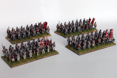 Aber auch von der Figurenfront gibt es Neues zu berichten. Ich habe eine weitere Division bemalt (Ok, eine Einheit war bereits fertig). Es handelt sich um die 1. Infanterie Division unter dem Kommando von Generalmajor George Cooke. Ihm unterstanden die 1. Britische Brigade des Generalmajor Maitland mit dem II. Bataillon und III. Bataillon der 1. Foot Guards sowie die 2. Britische Brigade des Generalmajor Byng mit dem II. Bataillon der Coldstream Guards und dem II. Bataillon der 3. Foot Guards.