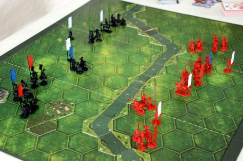 Bis vor kurzem hat sich das Spiel auch nicht so richtig in der Brettspielgemeinde durchgesetzt, was wohl vor allem an den Figuren lag. Die Minis sind zwar schön, aber aus Hartplastik und extrem filigran, was dazu führt, dass ständig Speere, Schwerter und Rückenfahnen abbrechen. Die Figuren müssen außerdem noch mühsam zusammengebaut werden. Zudem enthält die Box zwar 120 Figuren, was aber für ein „richtiges“ Command & Colors Szenario zu wenig ist. Die weitere Ausstattung des Spiels ist ausreichend, aber leider auch nicht richtig gut. So ist das Spielfeld nicht wie gewohnt faltbar, sondern besteht aus einzelnen Segmenten, die im Spiel natürlich oft unschön auseinanderdriften.
