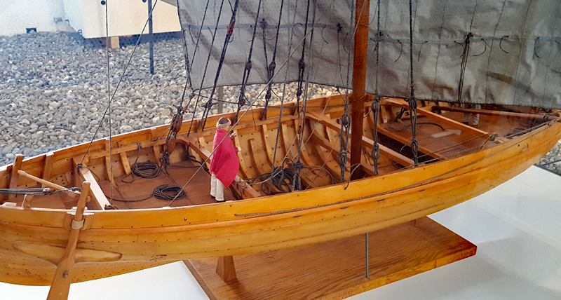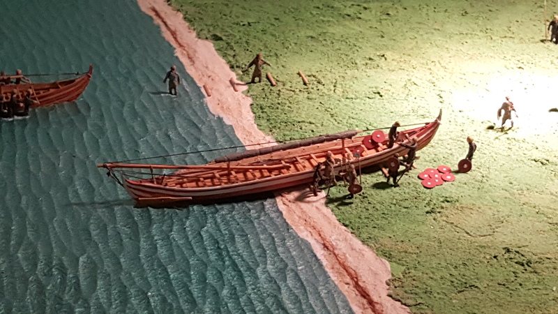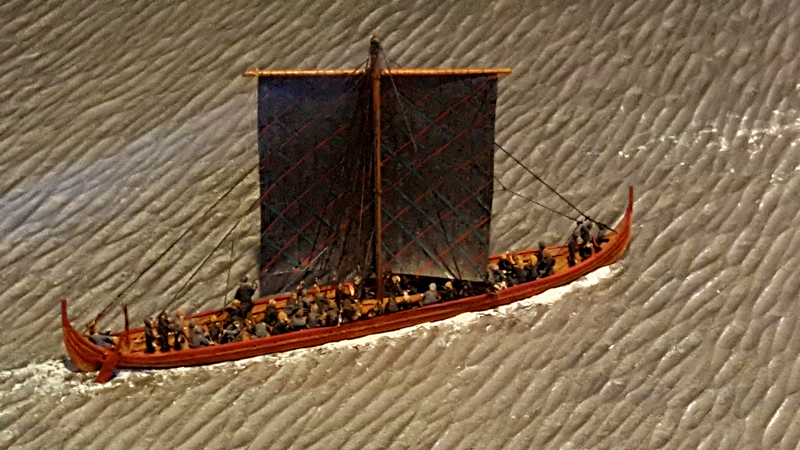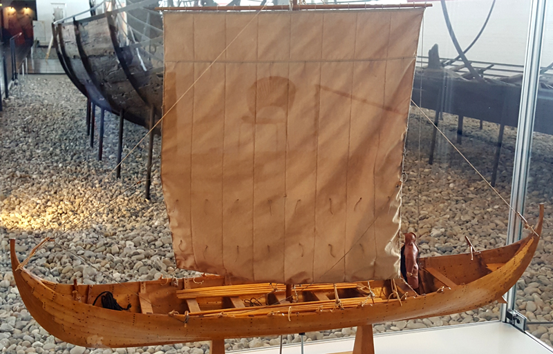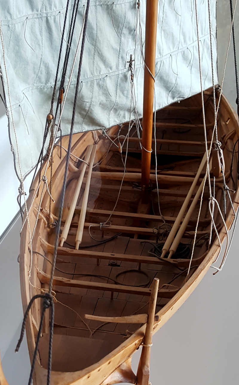 Dies ist ein Nachbau eines kleinen Bootes, welche in Gokstad bei Oslo gefunden wurde. Es war 6.5 m lang, 1,38 m breit und war für den Transport von Personen gedacht: