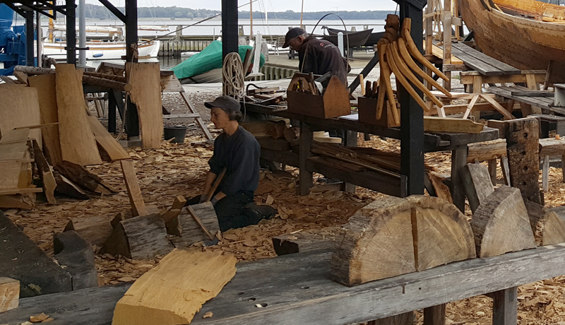 Neben dem Museum liegt eine traditionelle Boots-Werft, die alle fünf Wikingerschiffe nachgebaut hat. Durch diese Nachbauten, die zum Teil im Museumshafen ankern, hat man einen Eindruck davon, wie die ursprünglichen Schiffe vor 1000 Jahren ausgesehen haben. Die Flotte der Nachbauten wächst ständig und man kann den Bootsbauern bei ihrer Arbeit über die Schulter gucken und erhält einen Einblick in die traditionellen Werkzeuge, Baumaterialien und Techniken.