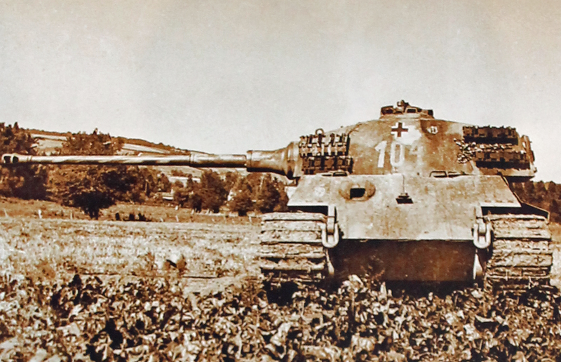 Der Tiger II oder Königstiger wurde 1944 zum ersten Mal während des Feldzugs in der Normandie eingesetzt und war zu dieser Zeit der mächtigste Panzer auf dem Schlachtfeld. Der Tiger II wurde in einer Stückzahl von 489 Exemplaren zwischen Januar 1944 und März 1945 im Henschel-Montagewerk hergestellt.