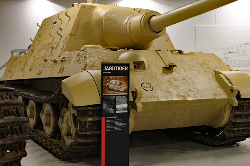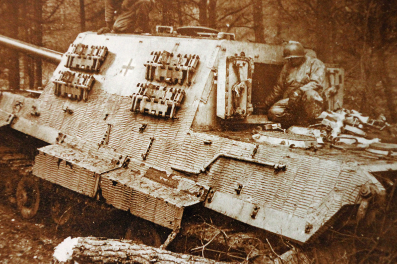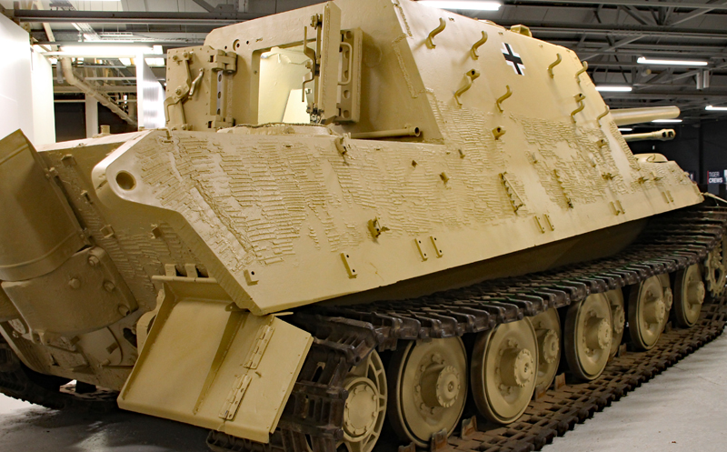 Der Jagdtiger des Museums Bowington wurde 1945 von amerikanischen Streitkräften erbeutet und als Testfahrzeug im Testgebiet Haustenbeck eingesetzt. Es war mit Zimmerit beschichtet – einer speziellen Paste, die verhinderte, dass magnetische Ladungen am Rumpf haften blieben.