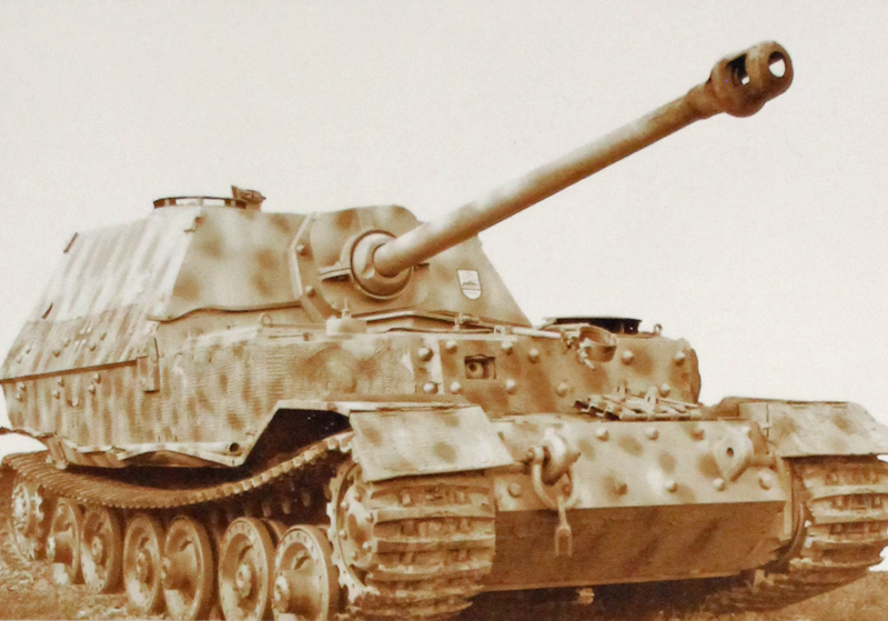 Der Jagdtiger wurde entwickelt, um mit einer 12,8-cm-Kanone bewaffnet werden zu können. Sein Fahrgestell basiert auf dem Tiger II. Der Panzer kam schließlich auf ein Gesamtgewicht von 72 Tonnen mit einer massiven Panzerung von bis zu 25 cm. Als der Jagdtiger im Herbst 1944 in die Serienproduktion ging, konnte er die Panzerung eines M4 Sherman auf über drei Kilometer Entfernung in jedem beliebigen Winkel durchschlagen.