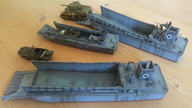 Das Thema Landungsboote will ich mir als erstes vornehmen. Ich hatte schon vor Jahren günstig zwei pre-painted LCM’s von Dragon und ein LCVP von Pegasus im Maßstab 1/72 gekauft. Mittlerweile sind weitere LCVP’s von Airfix und Heller sowie LCA’s und ein LCT von Mach-2 hinzugekommen. Die Recherche zu den Booten ist zwar mühsam, aber auch interessant. Hier in meinem Blog wird es bald die Ergebnisse in Form eines kleinen Berichtes geben.