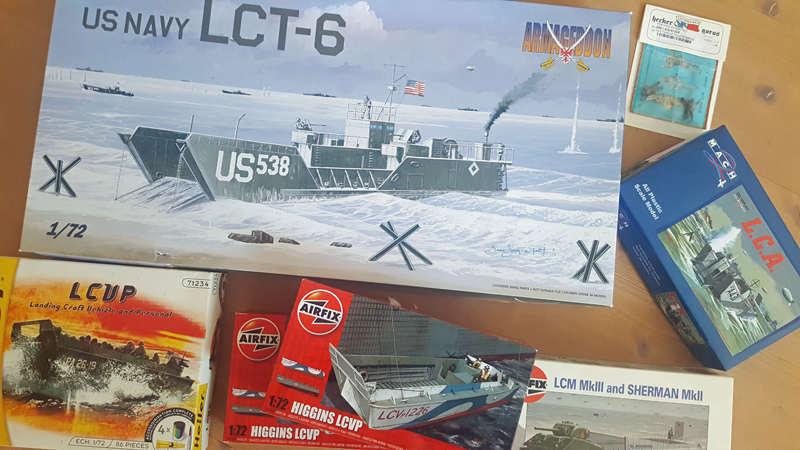 Das Thema Landungsboote will ich mir als erstes vornehmen. Ich hatte schon vor Jahren günstig zwei pre-painted LCM’s von Dragon und ein LCVP von Pegasus im Maßstab 1/72 gekauft. Mittlerweile sind weitere LCVP’s von Airfix und Heller sowie LCA’s und ein LCT von Mach-2 hinzugekommen. Die Recherche zu den Booten ist zwar mühsam, aber auch interessant. Hier in meinem Blog wird es bald die Ergebnisse in Form eines kleinen Berichtes geben.