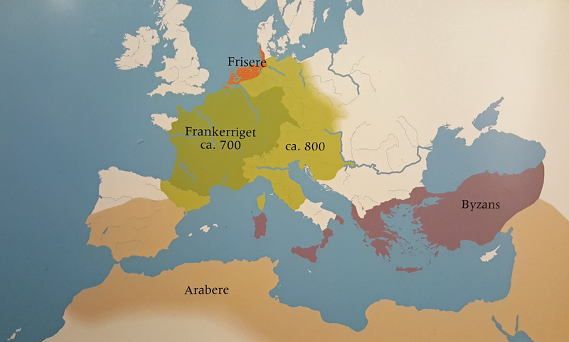 Byzanz im Osten und das fränkische Reich im Westen sind Europas Großmächte um 700 n. Chr. Entlang der südliche Nordseeküste wohnen die Friesen, eine Bevölkerung mit einer langen Tradition im Handel. Die Franken eroberten und christianisierten im Lauf des 8. Jahrhunderts große Gebiete.