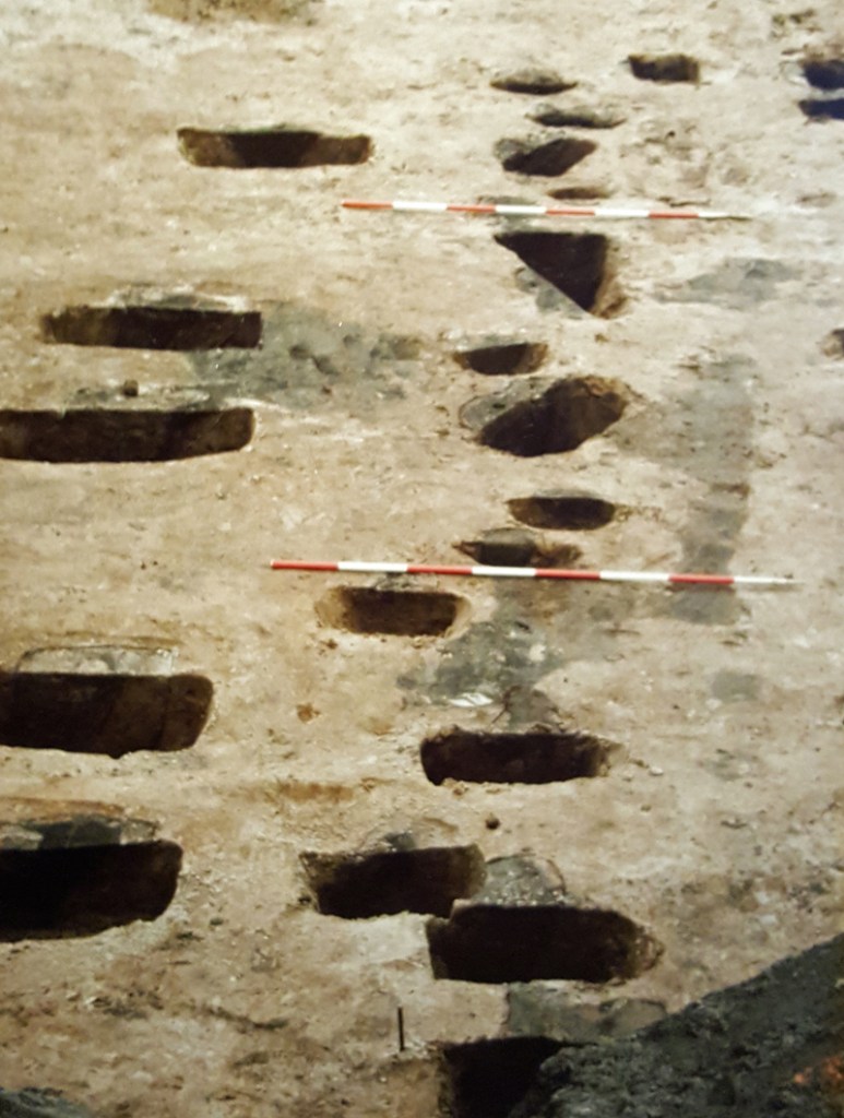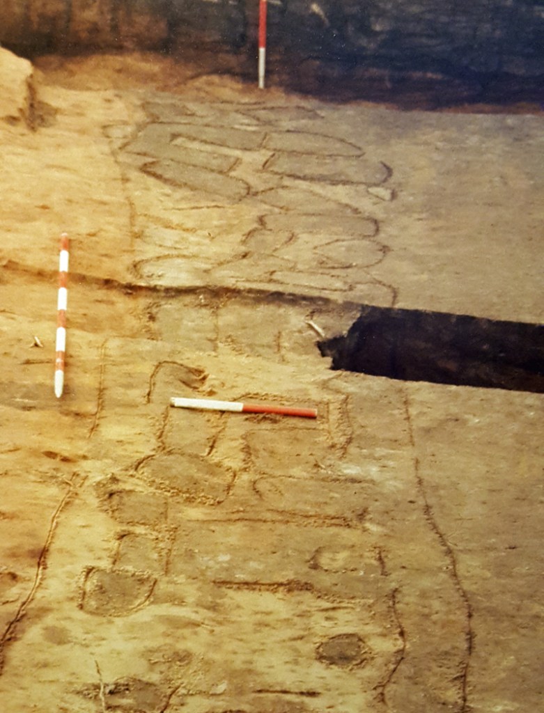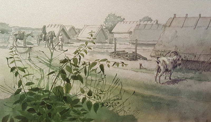Etwa 250 m südöstlich des Marktgeländes fanden sich Zeugnisse einer dauerhaften Siedlung., wie Reste von Pfostenhäusern, Wegen, Brunnen und Zäunen. Von den Häusern, die aus der Zeit des 8. Und 9. Jahrhunderts stammen, sind aber nicht mehr als die Pfostenlöcher und Feuerstellen geblieben.