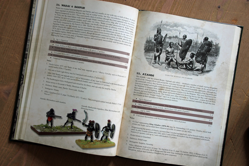 Death In The Dark Continent beinhaltet nicht nur die Basis-Regeln, sondern auch einen Abschnitt mit Sonderregeln und Szenarien sowie ein wahrlich episches Kapitel mit sage und schreibe 80 Armeelisten …es gibt sogar noch weiter 10 als Download: