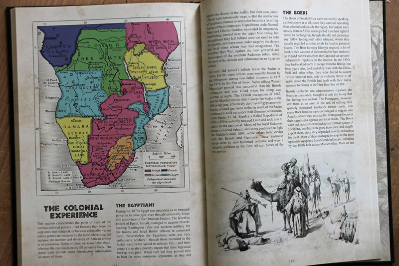 In den letzten Tagen habe ich ein weiters Regelwerk auf Herz und Nieren getestet. Es handelt sich um „Death In The Dark Continent“ von Chris Peers. Die Regeln stammen schon aus dem Jahr 2009, wurden aber in Zusammenarbeit mit North Star im Jahr 2017 noch einmal neu veröffentlicht. Das 175-seitige Regelwerk ist als Hardcover erhältlich und ist extrem aufwendig produziert. Unzählige Bilder, Zeichnungen und Fotos sowie ein stylisches Layout machen das Durchblättern und Lesen zu einer wahren Freude.