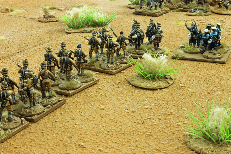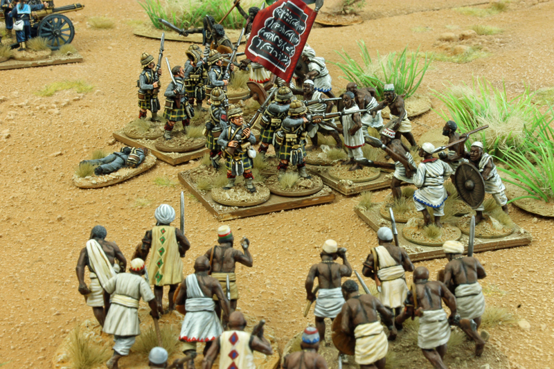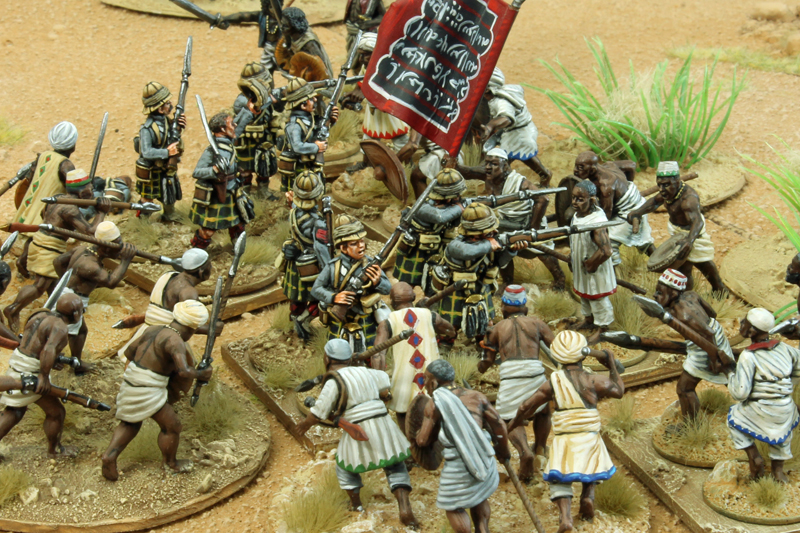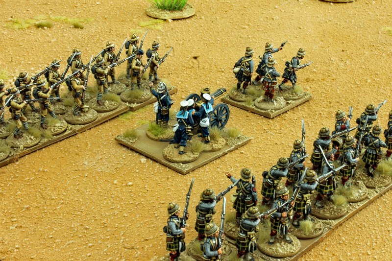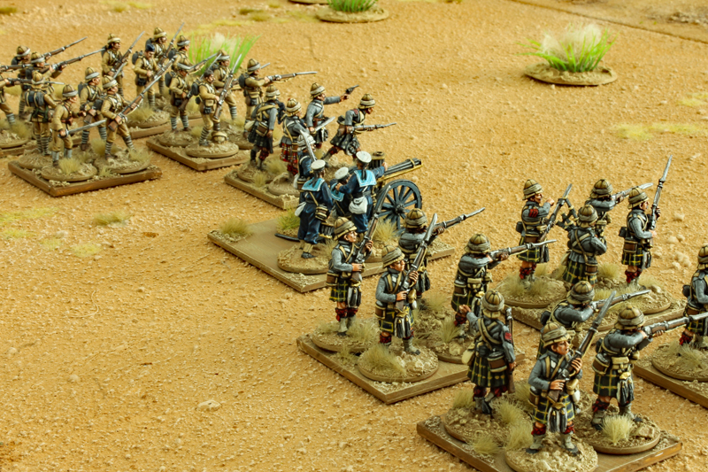 Zwei Runden lang gelingt es der letzten britischen Einheit den Gegner auf Distanz zu halten, während sich die Soldaten langsam zurückziehen und feuern. Durch den Beschuss der feindlichen Beja-Schützen verliert die Einheit jedoch eine Base und erhält zwei Disorder-Marker.