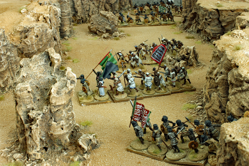 Die Briten gehen in Linienformation über, um ihre volle Feuerkraft einsetzen zu können. Es dauert so insgesamt 4 Runden, bis alle Beja aus der Schlucht geklettert sind und sich außerhalb der Schussweite der Engländer aufgestellt haben.