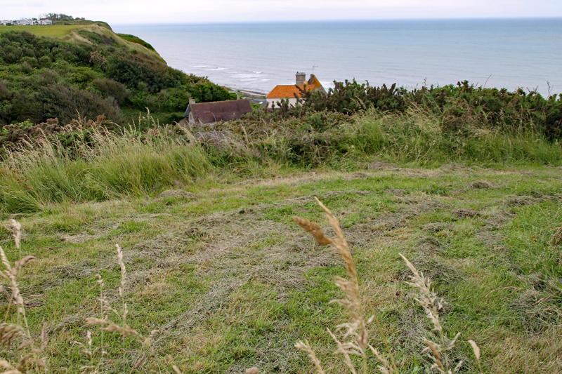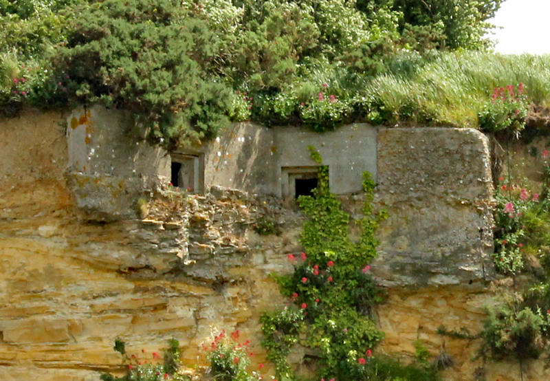 (3) Die Straße nach Vierville-sur-Mer wurde durch einen Vf Doppelscharten-MG-Stand kontrolliert, der in die Seitenwand des Plateaus eingelassen worden war. Hier hatte man vermutlich ein oder zwei MG-34 installiert.