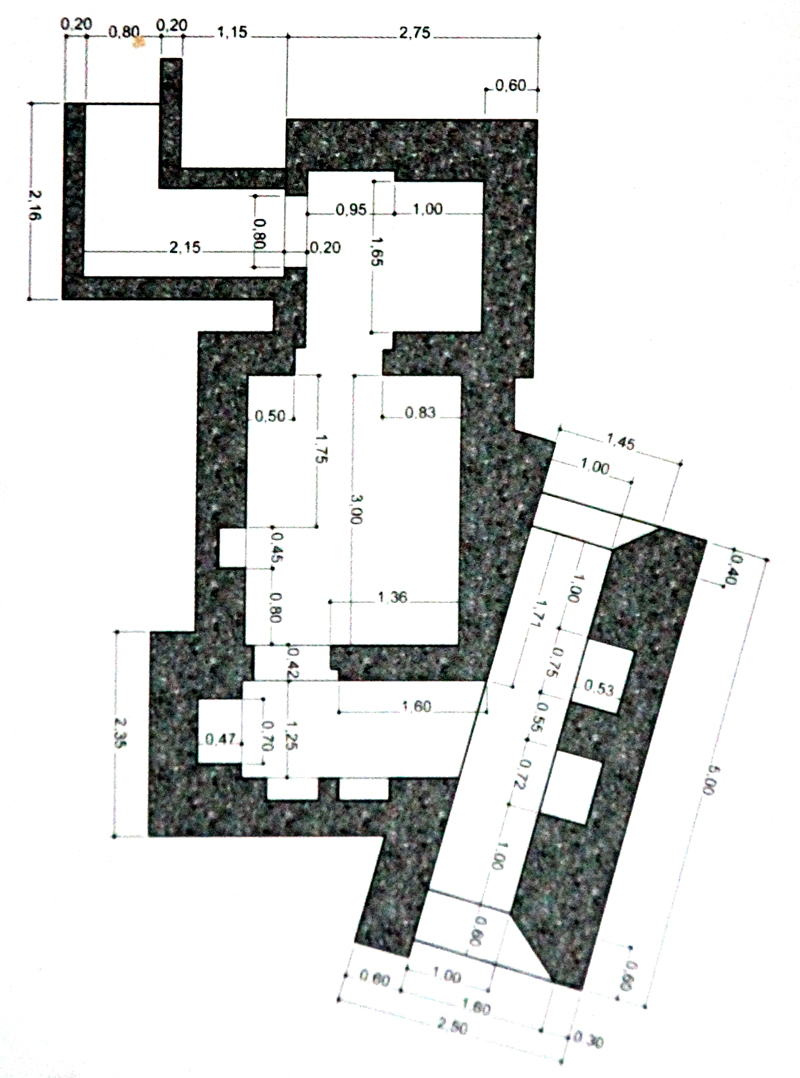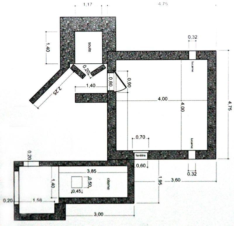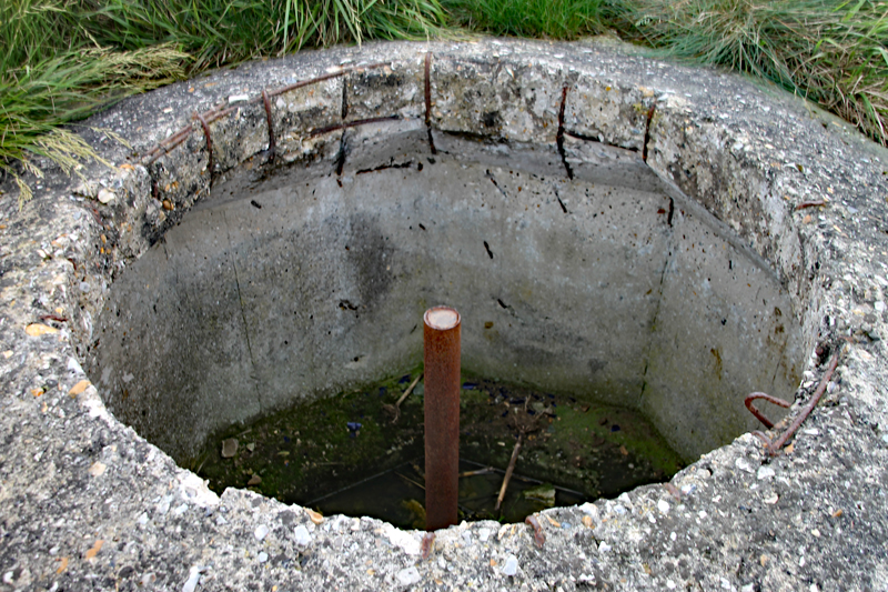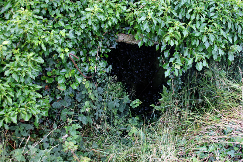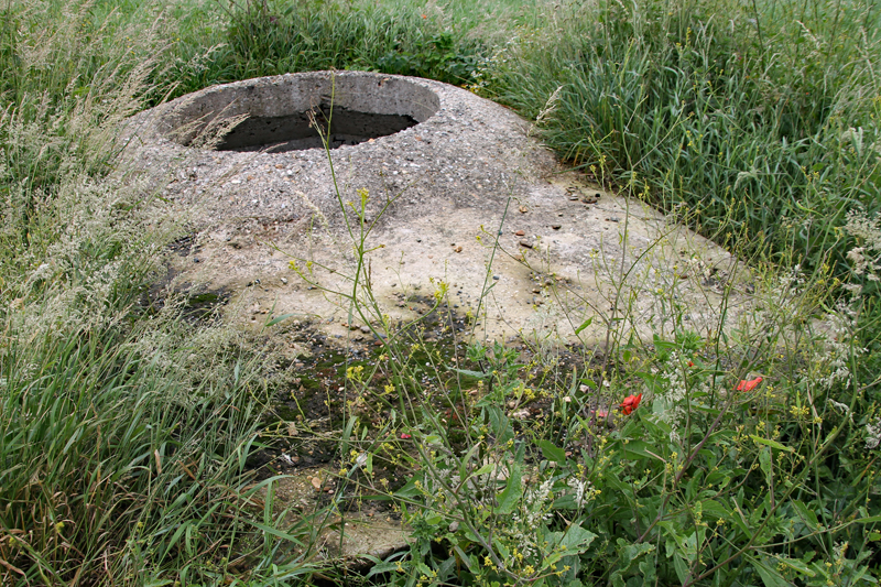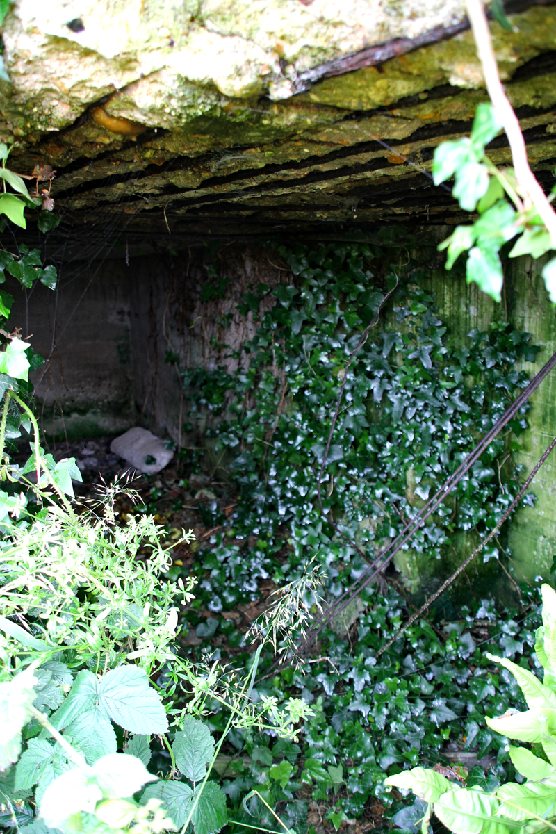 (6) Einziger Mannschafts-Bunker in diesem WN war ein feldmäßiger Unterstand mit Munitionsnische und einem Raum mit einem Wasserreservoir. Im Raum des Unterstandes gab es vermutlich einen gasdichten und druckfesten Ofen Wt 80 k. Der Unterstand verfügte über 2 kleine Fenster, die evtl. auch als Notausstieg genutzt wurden. Der Wassertank konnte 1.700 Liter aufnehmen. Bei meinem letzten Besuch war der feldmäßige Unterstand fast vollständig zugewachsen.