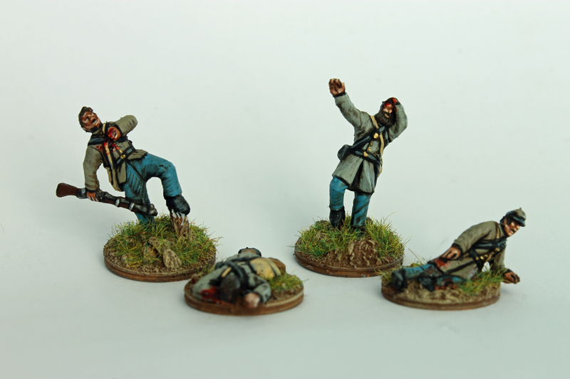 In meinem zweiten Bericht, welcher den Aufbau einer 1/72 Konföderierten Armee zu Thema hat, möchte ich meine nächsten bemalten Truppen vorstellen. Es handelt sich um zwei weitere Infanterie-Einheiten, eine Militär-Kapelle und einige Tote und Verwundete. Mit diesen Einheiten ist schon einmal die erste Phase, also die Bemalung einer kompletten Division bzw. Brigade (je nach Level, der gespielt wird) abgeschlossen.