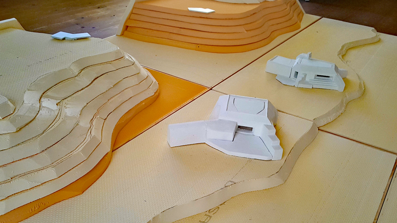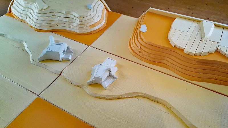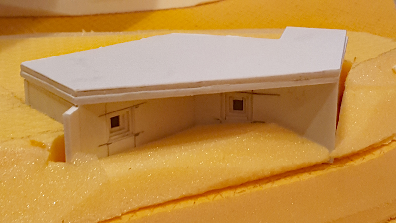 Man kann nun schon langsam sehen, wohin die Reise gehen soll. In den nächsten Tagen werden dann die Geländeteile eingepasst, Details ergänzt und die Oberfläche für die weitere Bearbeitung vorbereitet.