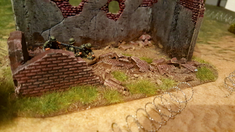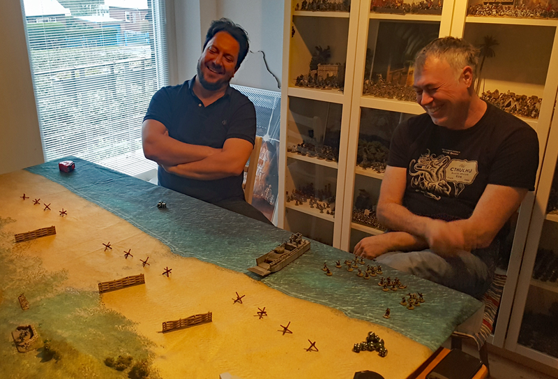 Sven und Björn werden sich, neben dem Malen und Basteln von Figuren, Fahrzeugen und Hindernissen nun schwerpunktmäßig um die Szenarien, Armeelisten und Sonderregeln kümmern. Außerdem ist geplant, dass Anfang Januar vier amerikanische Assault-Boat-Teams samt Landungsbooten und große Teile der Spielplatte fertig sein sollen. Es gibt also noch einiges zu tun.
