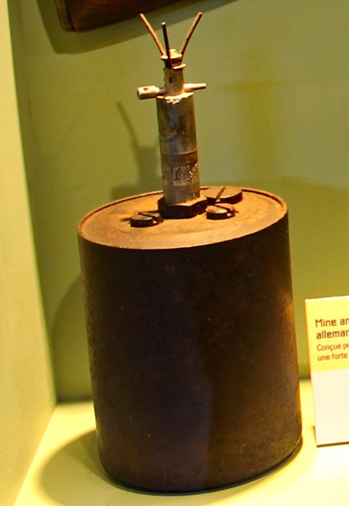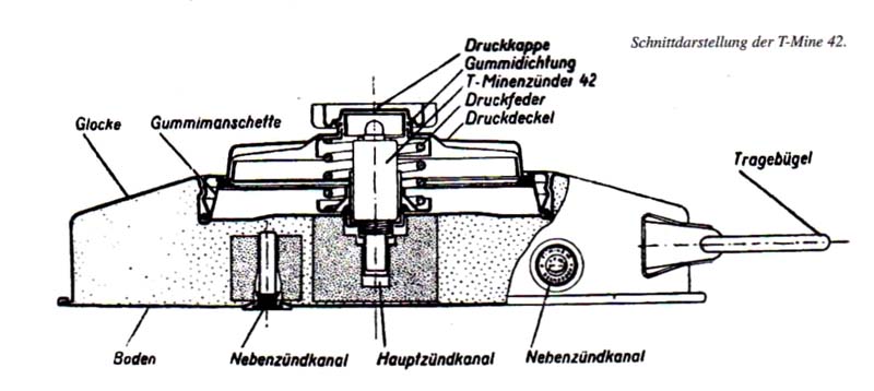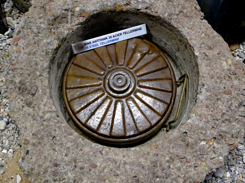 Die Minenfelder rund um die Widerstandsnester waren zum Schutz vor Panzern mit Teller-Minen (T-Minen) vom Typ 42 oder 43 bestückt, die in Zement eingegossen worden waren.