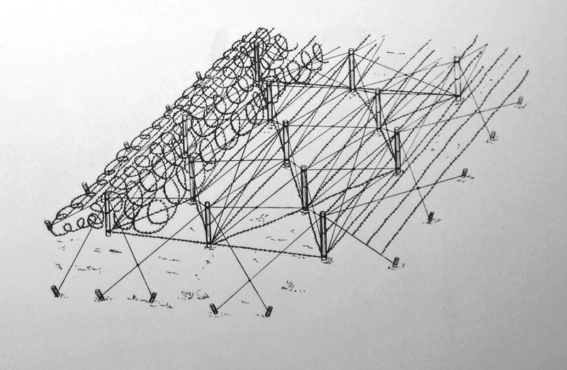 Rund um die Widerstandsnester wurden großflächig Minenfelder mit S-Minen, also Springmine, auch bekannt als „Bouncing Betty“, angelegt. Nach der Auslösung durch Tritt oder Stolperdraht und einer kurzen Verzögerung wurde der Minenkörper bis etwa auf Hüft- oder Kopfhöhe in die Luft geschleudert, wo er mit Splitterwirkung explodierte.