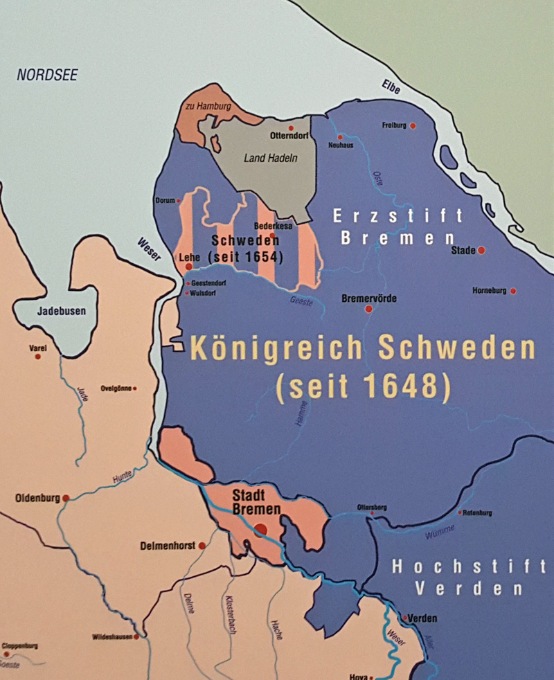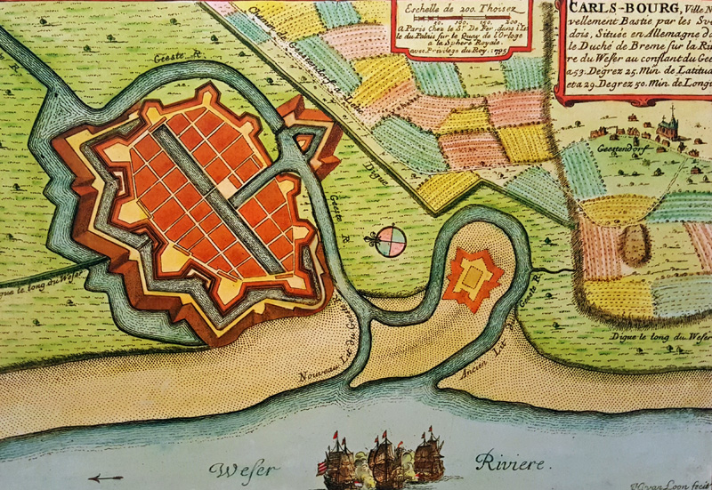 1672 wurde die kleine Leher Schanze durch die größere Carlsburg, benannt nach dem schwedischen König Carl XI., ersetzt. Die Festung und Stadtanlage der Carlsburg bestanden aus einem Oval mit 10 Bastionen mit 72 Kanonen, 2 vorgelagerten Redouten und schachbrettartig verlaufenden Straßen. Außerdem hatte man einen Kanal mit einer Zufahrt zur Geeste als Binnenhafen vorgesehen. In der Festung stationierte Schweden eine Brigade mit einer Stärke von 600 Soldaten.