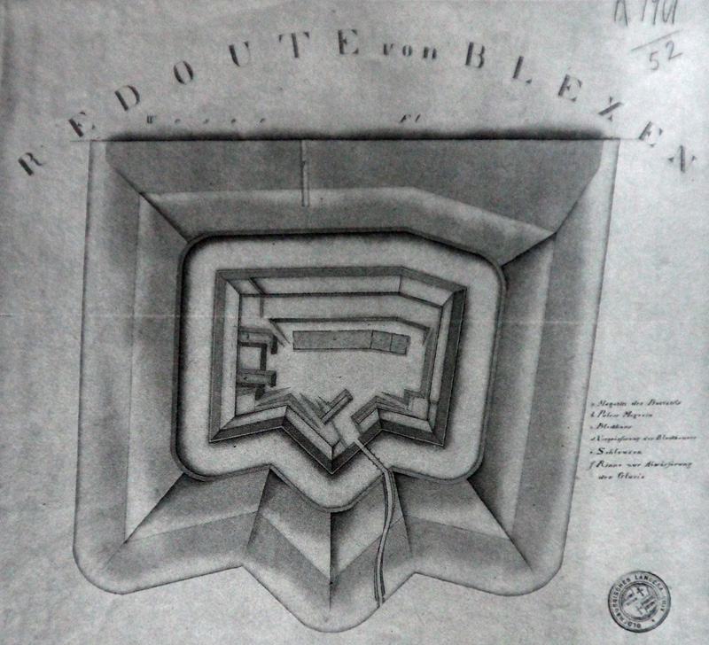 Zum Schutz der Wesermündung hatten die Franzosen drei Schanzen auf der Ostseite der Halbinsel Butjadingen angelegt. Die Batterie Fedderwarden lag auf einem Flügeldeich östlich von der Einfahrt des Fedderwarder Hafens. Sie verfügte über fünf Geschütze. Die Batterie Waddens befand sich in einem vorgelagerten Fort, das durch einen Damm an den Seedeich bei der Waddenser Pumpe angeschlossen war. Die Blexer Schanze, nahe der Ortschaft Blexen, lag gegenüber der Festungsanlage Carlsburg, wodurch ein Kreuzfeuer auf einfahrende Schiffe möglich wurde. Die Blexer Schanze befand sich 750 Meter nordöstlich von der Blexer Kirche, direkt an der Weser. In der ersten Ausbauphase schütze eine Palisade, sowie ein Wall und ein Graben die Batterie von zehn 24-Pfündern und zwei Haubitzen. Später erhielt die Schanze einem etwa 7,2 Meter breiten und 4,5 Meter tiefen Graben. Die Anlage hatte einen nahezu quadratischen Aufbau und drei Bastionen schützten die Festung zur Landseite. Die mittlere Bastion verfügte über eine Brücke, die einen Zugang über eine Zugbrücke von Westen aus ermöglichte. Außerhalb des Grabens gab es Glacis. Ein historischer Plan der Anlage zeigt ein Pulver- und ein Proviantmagazin, die in den inneren Wall eingelassen sind, sowie ein zentrales Blockhaus. Das Blockhaus wurde in einer zweiten Bauphase erweitert und konnte bis zu 80 Mann aufnehmen. Das Tor der Anlage wurde durch einen direkt dahinterliegenden Wall zusätzlich geschützt. Das Fort war nun mit sechs Geschützen ausgestattet, vier davon waren Kanonen, zwei davon waren Mörser. Ständig besetzt war die Schanze nur mit ca. 30 Mann. Die restlichen Soldaten und Offiziere hatte man im Dorf einquartiert.