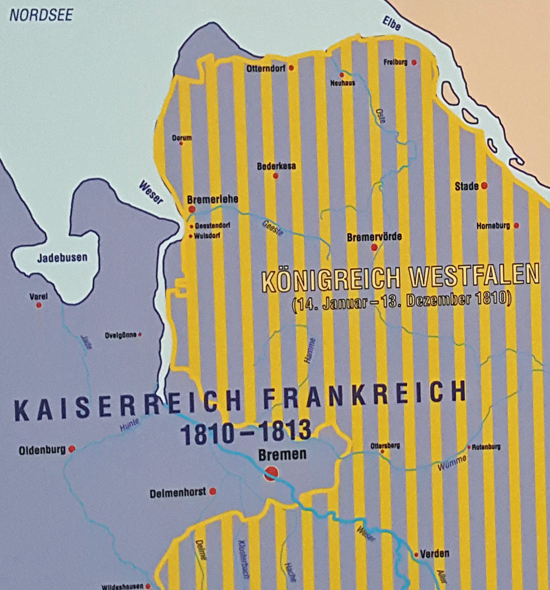 Am 13. Juli 1809 vereinigte man das Kurfürstentum Hannover mit dem Königreich Westfalen. Die Unterweser gehörte nun zum „Norddepartement“. Schließlich wurde am 13. Dezember 1810 der nördliche Teil Hannovers direkt ins französische Kaiserreich eingegliedert. Der Ort Lehe wurde am 4. Juli 1811 Hauptort des Arrondissement Bremerlehe.