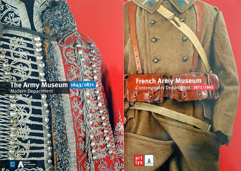 Bei meinem ersten Besuch des Museums gab es noch einige sehr aufwendige und gebundene Museumsführer zu erwerben, die unter dem Titel „Collections Historiques du Musée de l’Armée“ verkauft wurden. Das Ganze war eine Art Katalog der Exponate mit einer kleinen Erläuterung. Ich selbst besitze nur die Bände 6 und 7, welche die Napoleonischen Kriege von 1804 bis 1815 umfassen. Bei den neuen Museumsführern handelt es sich um deutlich kleinere Softcover-Hefte, die nur noch einige ausgewählte Exponate enthalten, aber einen guten Überblick in die Ausstellungen geben. Vorteil der neue Museumsführer sind zum einen der durchgängige Vierfarbdruck und zum anderen, dass die Bücher auch in englischer Sprache erhältlich sind. Beides war bei den alten Büchern nicht der Fall.