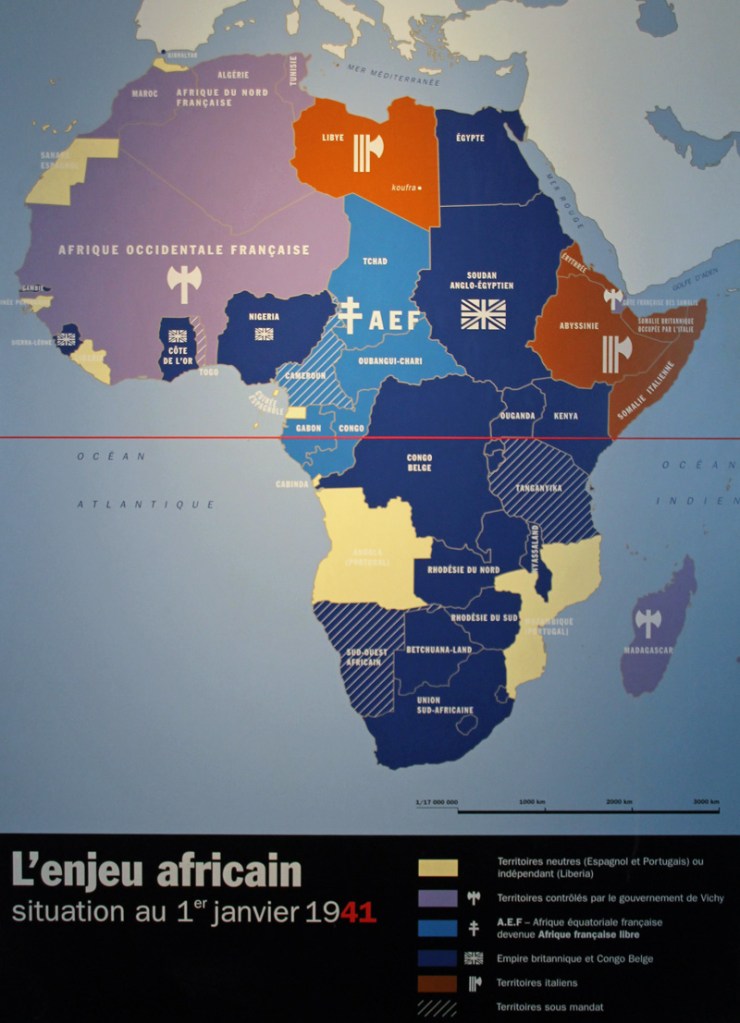 Vom 10. Mai bis 25. Juni 1940 gelang es Deutschland in einem „Blitzkrieg“ gegen die französische Armee und die britischen Expeditionstruppen Frankreich zu erobern. Den Schlusspunkt bildete der Waffenstillstand von Compiègne mit Frankreich vom 22. Juni, der drei Tage später in Kraft trat. Der Großteil Frankreichs und Benelux blieb über vier Jahre unter direkter deutscher Kontrolle. Bereits im Juni 1940 bildeten 1.300 nach England entkommene Freiwillige die Forces françaises libres (FFL). Diese Truppe vergrößerte sich durch die Eingliederung der Truppen aus Französisch-Äquatorialafrika, die sich unter der Leitung von Gouverneur Félix Éboué von Vichy-Frankreich gelöst hatten. Die Einheiten der FFL kämpften in den Reihen der Alliierten in Gabun 1940, in Syrien 1941, in Libyen in der Schlacht von Bir Hakeim 1942 und in Tunesien 1943. Im gleichen Jahr fusionierte die FFL mit der „Armée d’Afrique“. Es folgten der Einsatz bei der Befreiung von Korsika und anschließend der Feldzug in Italien, die Landung in der Provence im August 1944, die Befreiung von Paris und der Feldzug in Deutschland bis zum Kriegsende.