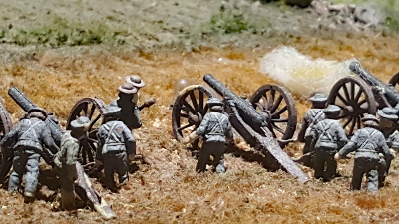 Die Geschütze der Batterie Smith am Devils Den werden von konföderierten Truppen überrannt.