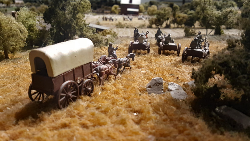 Zwei Artillerie – Batterien der Union stehen in Reserve hinter dem Cemetery Ridge bereit.