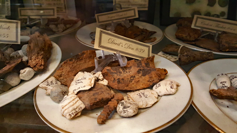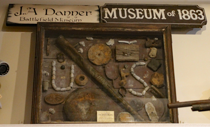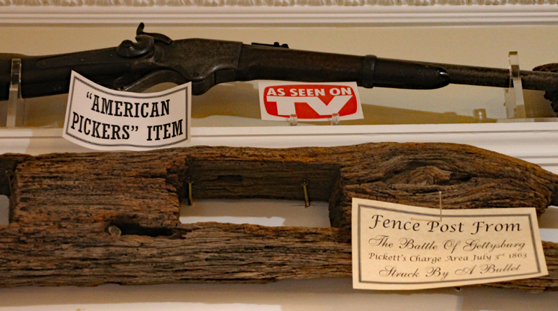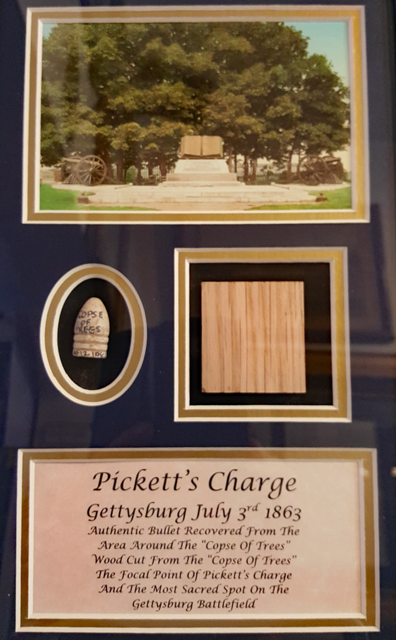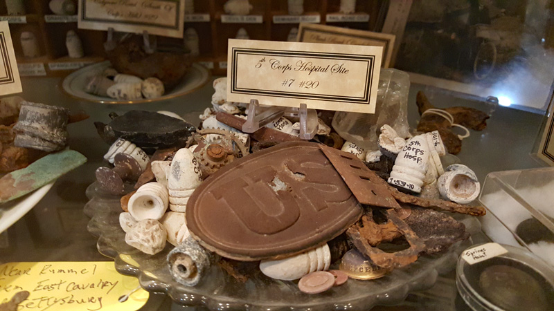 Ein Verkaufsschlager waren vor allem Artilleriegeschosse (die teilweise sehr dilettantisch einschärft worden waren).Später wurden mehrere Fundstücke zu eine Art Bild oder Schreibset zusammengestellt und so als dekorativer Schmuck als Set verkauft. Hier ein Beispiel aus dem ehemaligen Danner Museum.Ein weiteres Beispiel für eines dieser Bilder-Sets.Noch heute werden diese „Sets“, wie dieses aus dem Gettysburg Museum of History, angeboten.Eines der alten Museen war das „General Lee Headquarter Museum“, des Sammlung teilweise heute von Erik Dorr übernommen wurde.