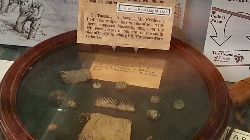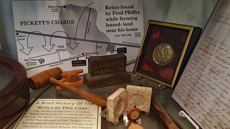 Die Pfeffers, die Vorfahren von Erik Dorr, lebten während der Schlacht auf einer Farm bei Gettysburg in der Nähe der späteren Eisenhower Farm. Sie verließen die Farm mit ihren Pferden, als die konföderierte Armee in Gettysburg einfiel. Ihr Haus und ihre Farm wurden von Konföderierten besetzt. Als sie am 4. oder 5. Juli zurückkamen, fanden sie ihre Farm durchwühlt und nichts war übrig außer einigen Gegenständen, die konföderierte Soldaten zurückgelassen hatte. Die Pfeffers zogen nach dem Bürgerkrieg nach Ziegler’s Grove (die ehemalige Emanuel Trostle Farm), bei Gettysburg. Die nachfolgenden sechs Fotos zeigen einen Teil der „Pfeffer Collection“…