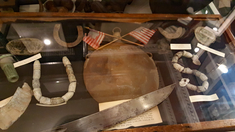 Schwerpunkt der Sammlung von Erik Dorr ist wie schon erwähnt der Amerikanische Bürgerkrieg, es gibt aber noch deutlich mehr in dem kleinen Museum zu sehen. So kann man eine Sammlung zu den amerikanischen Präsidenten bestaunen und speziell zu J.F Kennedy findet man eine Unmenge an Material in einem separaten Raum. Neben dem Amerikanische Bürgerkrieg macht der 2. Weltkrieg einen Großteil der Sammlung aus. Vor allem die Sammlung von Dick Winters und seiner Easy Kompanie ist wohl weltweit einzigartig. Da alle Schaukästen und Räume bis unter die Decke vollgestopft sind, ist es schwierig den Überblick zu behalten und auch Fotos zu schießen ist nicht immer einfach. Im nachfolgenden Bildbericht versuche ich deshalb, für euch das Gewusel zu entwirren und zu erläutern.