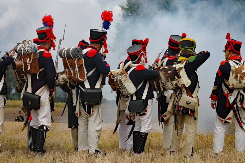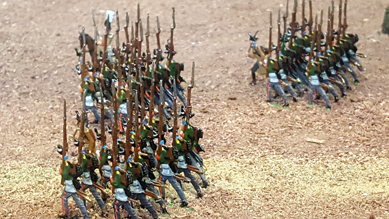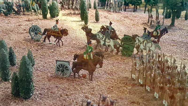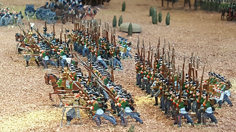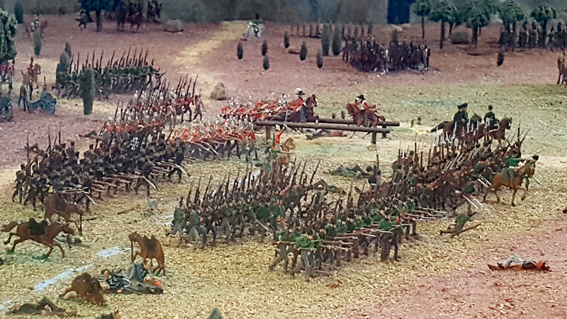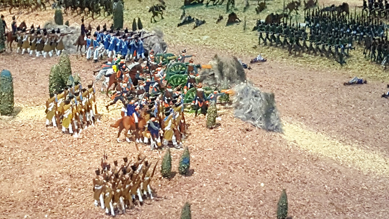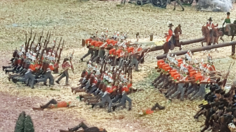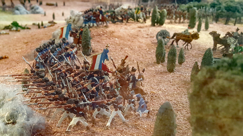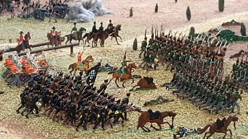 Die Protzen der Franzosen suchen Schutz zwischen den Infanterie-Formationen / Zinnfiguren-Diorama Heimatmuseum Dahlenburg.