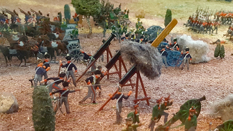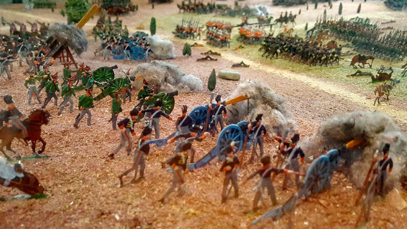 Die Batterie der Hanseaten (links) und der KGL (rechts) / Zinnfiguren-Diorama Heimatmuseum Dahlenburg.