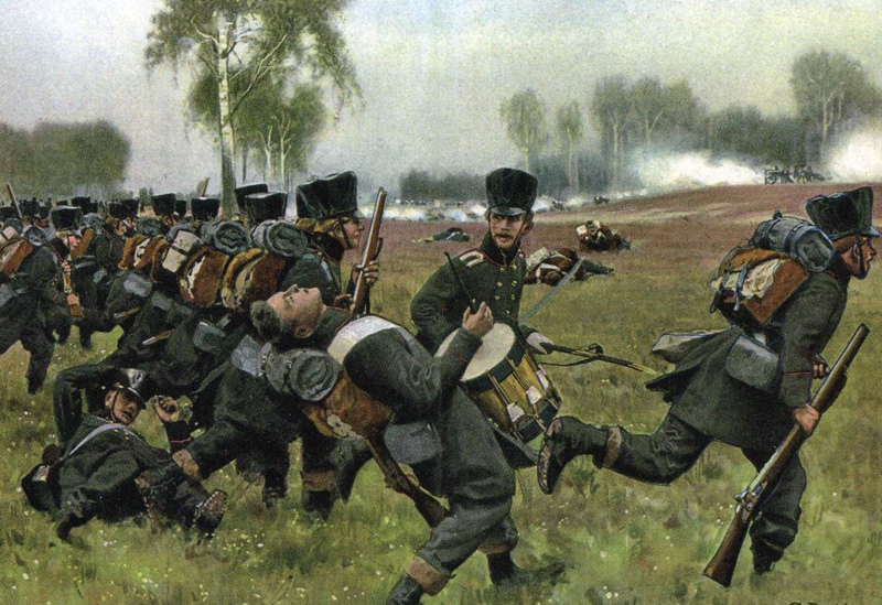 Die Infanterie der Russisch-Deutschen-Legion rückt vor / Zinnfiguren-Diorama Heimatmuseum Dahlenburg.