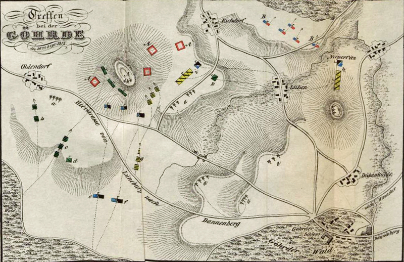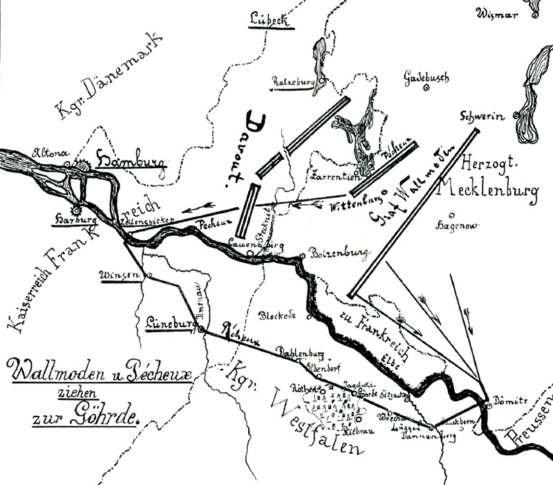 „Die Division Pécheux, welche Marschall Davout auf das linke Elbufer geschickt hatte, wurde am 16.09. bei Göhrde vom General von Wallmoden angegriffen und nach einem hartnäckigen Widerstande gänzlich aufgerieben. Alle Kanonen des Feindes, seine Wagen, ein General nebst sehr vielen Offizieren und über 2.000 Gefangene fielen in unsere Hände, der Rest der Truppen blieb größtenteils tot und verwundet auf dem Platz. General Pécheux selbst entkam mit einigen hundert Flüchtlingen unter dem Schutz der einbrechenden Dunkelheit über die Elbe“.