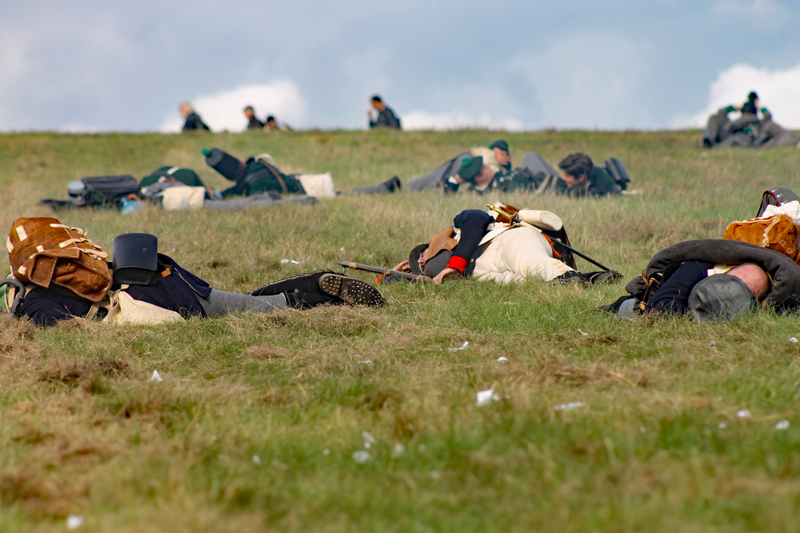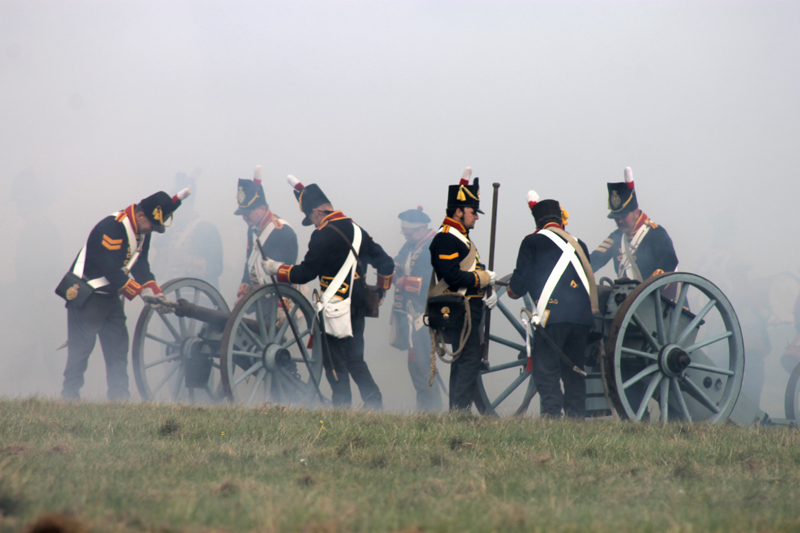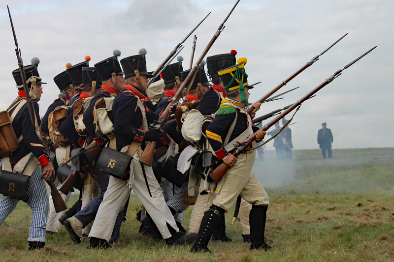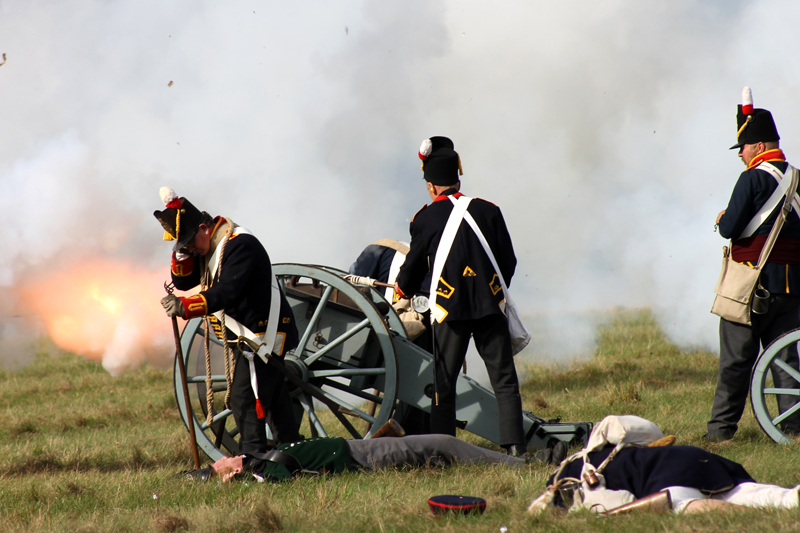 16.00 Uhr: Die Kolonne Arentschildt erreicht das Forsthaus Röthen. Die Artillerie der RDL protzt ihre Geschütze ab und eröffnet das Feuer. Die Franzosen sind durch den Beschuss in ihrer rechten Flanke überrascht und ziehen ihre Einheiten an dieser Seite zurück. Nun geht die Kavallerie der RDL gegen die rechte Flanke der Franzosen und gegen Eichdorf vor. Hier in Eichdorf haben auch schon Kosaken Stellung bezogen. Die Franzosen sind zu diesem Zeitpunkt also schon von fast allen Seiten bedroht.